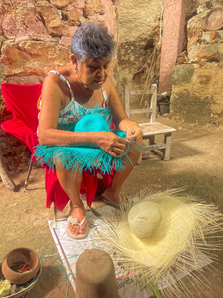 Antes, describió doña Yolanda, las cuevas del norte -ubicadas en esa coordenada de la localidad-, por ejemplo, estaban divididas en una cueva para hombres y otra para mujeres desde sus inicios, división que se ha ido perdiendo con el tiempo, además de la falta de remodelación necesaria, hoy en día son las tejedoras las que están al frente de ellas; situación similar ocurre con las cuevas del sur -misma coordenada en la localidad-, aunque todavía continúan activos importantes tejedores. Por cierto, fueron en estas últimas, en donde escuché que solo le llaman sombreros de jipi “sin japa”, porque ya son dos historias distintas abrazadas con respeto mutuo y admiración entre dos pueblos del Sur global.