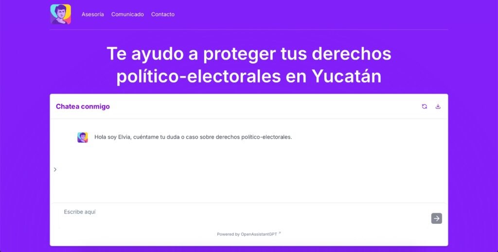 Elvia Derechos, como la nombraron en honor de la luchadora social Elvia Carrillo Puerto, es una herramienta artificial que opera en tiempo real y ofrece respuestas inmediatas, sin tecnicismos. Está entrenada para indicarte a dónde debes acudir, qué documentos necesitas y cómo debes presentar los escritos pertinentes.
