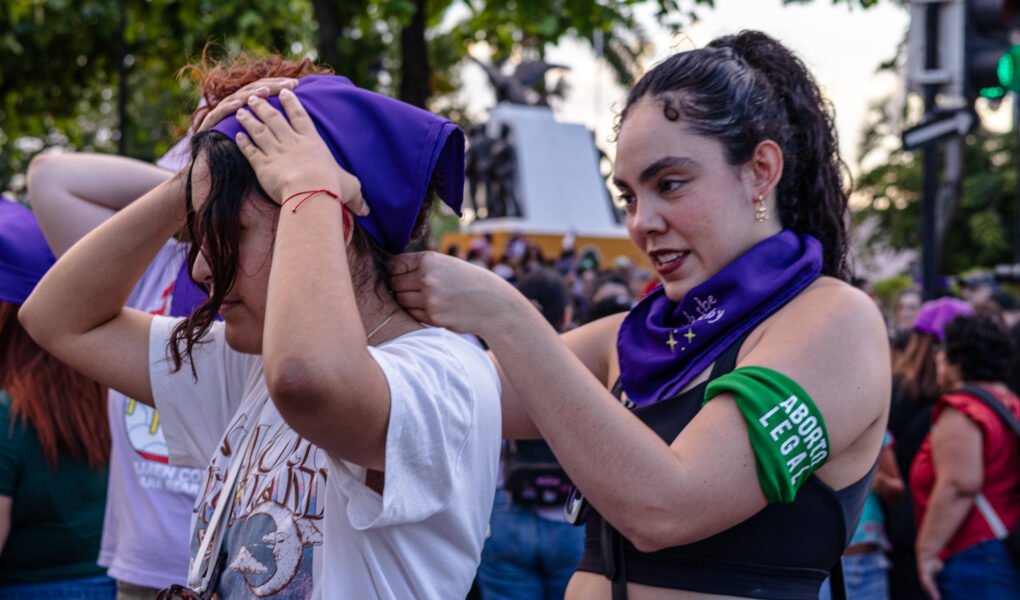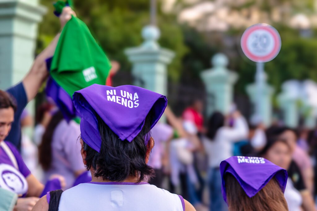 La sororidad en una marcha se ve de muchas formas, la contención colectiva ante denuncias es una. Pero también hay otras más sutiles y tiernas. Estaba cargando a mi sobrina antes de comenzar la marcha y una chica se nos acercó, le regaló una pulserita morada a la bebé y me regaló una verde con morado a mí, que dice “libre”. Todavía me enternece y me da fuerza ese momento.